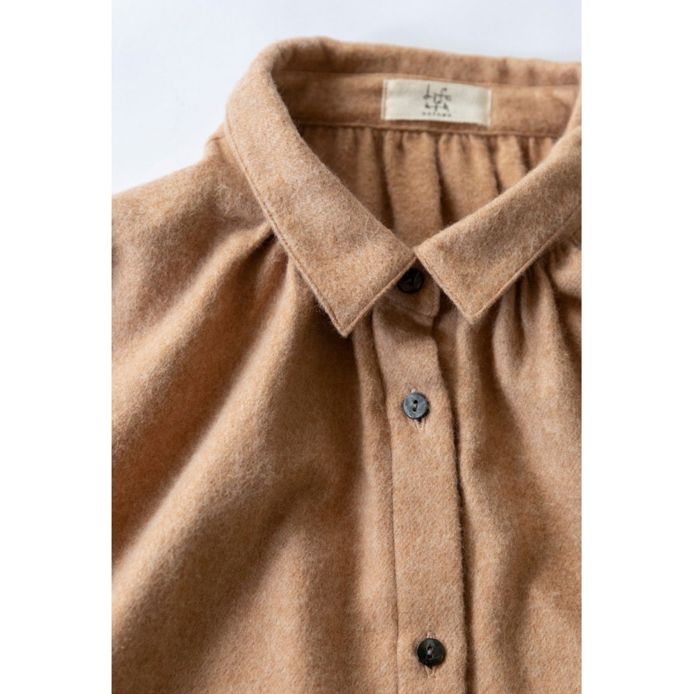 オーガニックコットン生成りのネル生地は、微かに毛羽立ち柔らかくあたたかい風合いに仕上がりました。